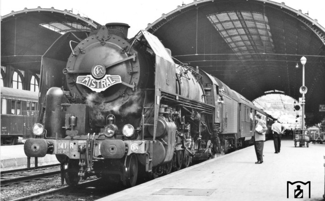 Bild oben: 141.R.1173 im Dienst des edlen Fernzuges "MISTRAL" steht 1964 abfahrbereit in Nizza. Copyright: Konrad Pfeiffer / Slg. Eisenbahnstiftung.