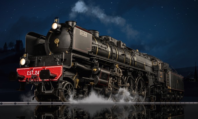 In der Königsspur 1 erscheint das Modell des legendären Edelweiss-Pullman-Express der 1920er Jahre. Der sechsteilige Luxuszug enthält dabei zwei Couplagen mit je einem Salon- und einem Salon/Küchenwagen und dazu zwei passende Gepäckwagen. Das Modell wird in Handarbeit aus Messing gefertigt und ist mit vielen digitalen Funktionen ausgestattet. Dabei hat jeder einzelne Wagen seinen eigenen Decoder und teilweise - je nach Wagentyp - unterschiedliche Funktionen.