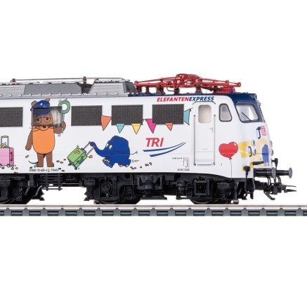 Der kleine blaue Elefant feiert in diesem Jahr seinen 50 Geburtstag. Aus diesem Anlass hat die TRI eine Lok der Baureihe 110 im Maus- und Elefant-Design gestaltet. Das Modell dazu gibt´s bei Märklin.